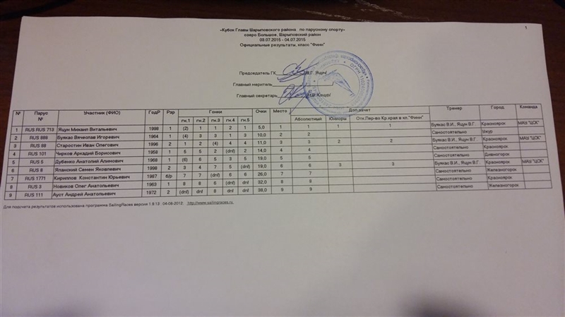 Документы регаты