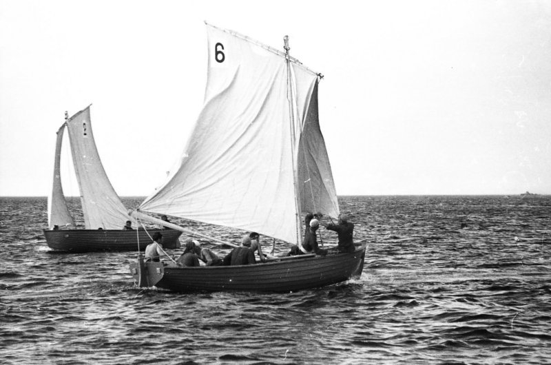 Экипаж нашей яхты «Звездного» класса под управлением Т. Пинегина с матросом Ф. Шутковым блестяще провел соревнования в самом трудном (сложном по управлению) классе. В семи гонках они заняли последовательно 1, 2, 1, 1, 3, 5 и 5-е места.